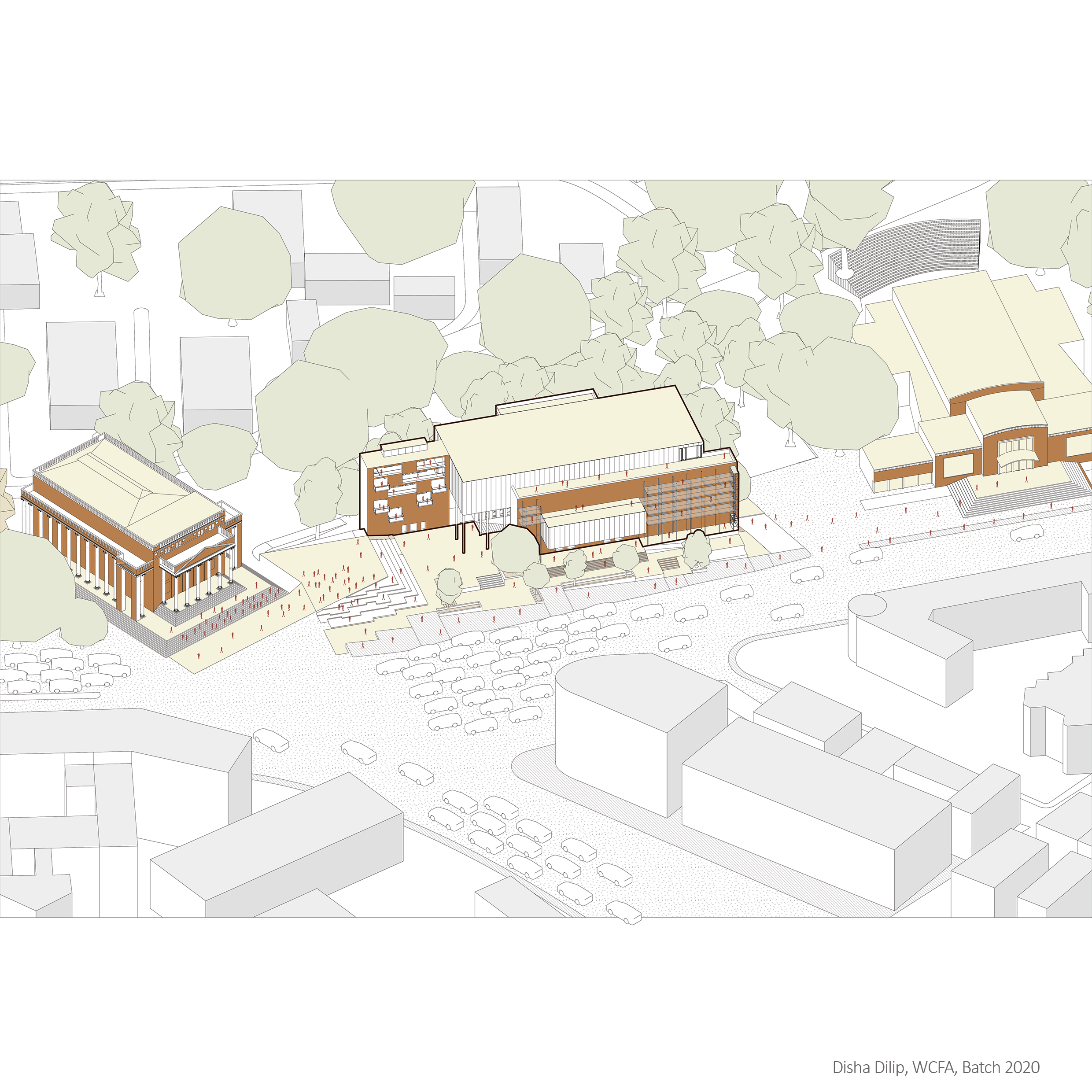 By formulating a program that lets its public aspect delve into the idea of social awareness, commentary, action and its cultural manifestations, the building becomes the perfect metaphorical and literal intersection between politics and art, aiming to create a democratic space for the people of Bangalore.