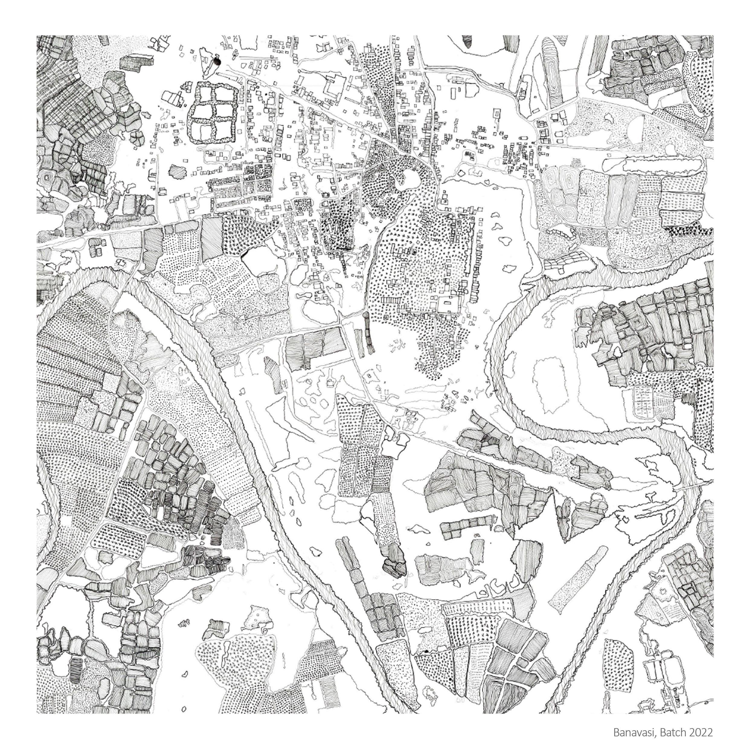 Detailed masterplan for the Settlement nestled in the buffer zone of malnad region idea was to capture the biodiversity agricultural patterns , tarrens, natural resources, settlement patterns as a landscape rhetorics