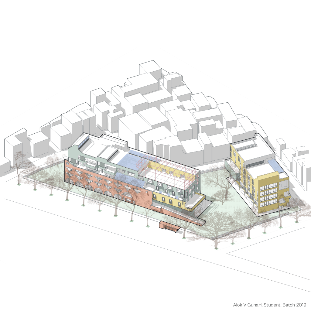 The thesis was an exploration on how our built environment can contribute to a more balanced humane experience. While speed has become the hallmark trait of this century , our cities need unhurried spaces that allow us to slow down and be present. This project aims to introduce this slowness in a fast paced urban neighbourhood and let people ‘be’. Introducing Slowness is about cultivating a sense of mindfulness, not rejecting progress but re-evaluating our values.